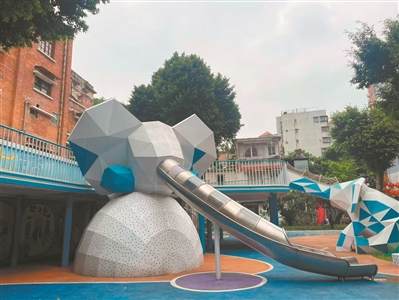 随着时代变迁,这些传统的大象滑梯渐渐淡出人们的视野。记者近日走访永安公园时了解到,公园此前进行了“爆改”,原有的“高龄”大象滑梯由于倾斜度较大,已经封闭管理,只保留作为景观建筑。旁边新建了不锈钢大象滑梯、攀爬设施及连廊等自带现代感的游乐设施,满足不同年龄段儿童的需求。