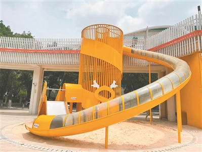 桂城的答案,令人眼前一亮。“地下工厂,地上公园!”这是千灯湖儿童公园的特色:地下是南海区首个大型地下式水质净化处理厂,地上则是千灯湖水生态研学基地科普型公园。公园集实用性与休闲娱乐功能于一体,让土地资源得到了高效利用。近日记者走访时留意到,公园内有不少孩子在儿童游玩科普区玩耍,儿童组合滑梯、儿童攀爬架、攀爬网等设施深受孩子们的喜爱。