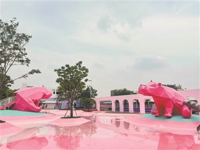 从城市美学出发,这些儿童天地越来越高颜值、智能化、科技感。在南海桂城的二洲奇妙水岸,市民梁小姐带着3岁的儿子前来玩水。这个高颜值的儿童玩水乐园,整体以粉红色系为基调,引入粉色河马IP与无动力玩水设施,营造奇妙梦幻的氛围,一度成为遛娃打卡的热门“网红点”。