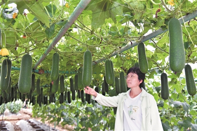 活动上引人注目的还有可以当水果吃的节瓜——翠玉4号水果节瓜。该新品种由广州市农业农村科学院历时6年培育而成,以其脆嫩多汁、高达8.2%的糖度和超过万元的亩收益广受市场好评。