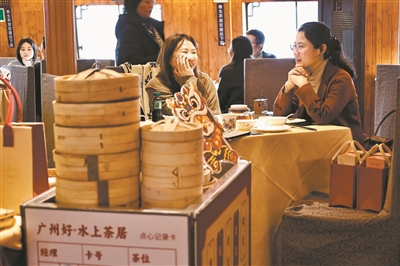 “食在广州”是羊城响当当的“标签”,也是珠江游融合发展的重要方向。除了有着星级酒店水准的自助餐,越来越多人在珠江水波荡漾中细品“一盅两件”。广州的饮茶文化“移植”到游船,“得闲饮茶”的松弛感也延伸到水上。水上茶居、下午茶航班,一趟趟开出的游船不断扩充水上美食的品类。广州公交集团客轮有限公司副总经理刘万里表示:“我们常在思考,珠江游还有什么可做。现在看来,做好珠江游这张名片,以珠江游带动其他产业,未来大有可为!”