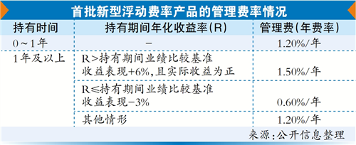 据悉,本批新型浮动费率基金均设置了1.2%(基准档)、1.5%(升档)、0.6%(降档)三档管理费费率。具体来看,投资者持有基金超过一年的,若持有期间年化收益率为正,且跑赢业绩比较基准超6%时,管理费率为1.50%/年;当持有期间年化收益率跑输业绩比较基准3%或更多时,管理费率为0.6%/年;其他情形下,管理费率为1.2%/年。
