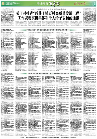 关于对推进“百县千镇万村高质量发展工程”工作表现突出集体和个人给予表扬的通报