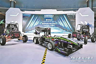 深圳技术大学赛车工作室自主研发的三辆赛车。