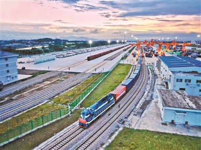 从广州东部公铁联运枢纽(增城铁路物流园)开往西欧的班列(资料图片)。广州日报全媒体记者苏俊杰 通讯员刘胜昊、从志坤 摄