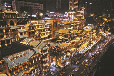 重庆洪崖洞夜景。