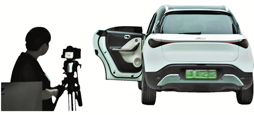 在懂车帝汽车商城线下门店内,工作人员在专业摄影棚内拍摄录入二手车信息。