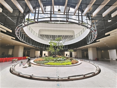 中央圆弧造型“天窗”,模拟自然阳光透过白云山云雾。 图/广州日报全媒体记者骆昌威