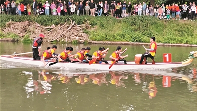 潮阳和平下宫妈祖和兴龙舟队在英国剑桥康河奋力挥桨。