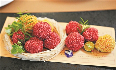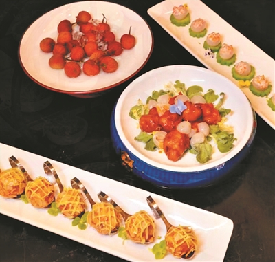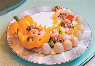 “荔枝季到了,我们酒店准备了22道荔枝菜,既有传统粤式做法,也有融合西式、日式的创新尝试,食客们都非常喜欢。”谭海说。