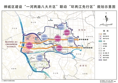 “一河两路八大片区”联动“环两江先行区”规划示意图。(通讯员供图)