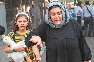 6月15日,在伊朗首都德黑兰,以军袭击过后一名受伤女性走在街上。 新华社发