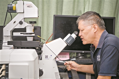胡桂兵进行分子育种研究。