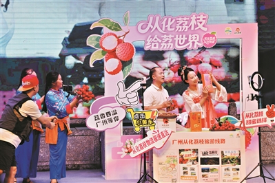 从化区以快闪节目推介荔枝。节目汇聚近百名村党支部书记、百名大学生、荔农、网红及百家荔企代表,以“科技+文旅+直播”模式,呈现荔枝从枝头到舌尖的全过程。