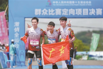 十五运会群众赛事活动共设23个大项166个小项。5月8日—11日,首场决赛——“定向比赛”在茂名举办,东道主广东队赢得了群体项目首金。“赛事搭台、文旅唱戏”,赛事充分利用“首金”打造鲜活展台,赛场设计深度融入地域文化特色,并紧密结合荔枝节等,展现茂名的全新形象,将体育的“流量”转化为城市发展的“增量”。来自俄罗斯的技术官员点赞赛事组织:“十五运呈现出了世界级赛事水准。”他直呼“被中国乡村巨变和当地人的幸福感所惊艳”。同时,“首金赋能计划”也让“体智结合”的定向运动得到了极大推广,助力全民健身和体教融合的深入发展。