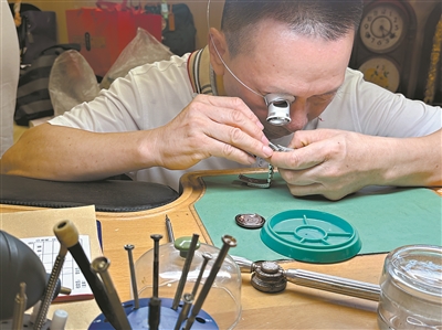 手表零件精密细微,考验着修表师傅的真功夫。