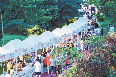 本届佳果游园荟还打造消费新亮点,荔园创意市集烟火气十足,100多个摊位连续多日打造促消费的新亮点。除了八大美食、荔枝衍生产品、省市非遗展示、文创展示、创意潮玩手办、毛织品等摊位,还有阅读推广、亲子手工体验、小概念音乐会、乐昌农副产品推介等。