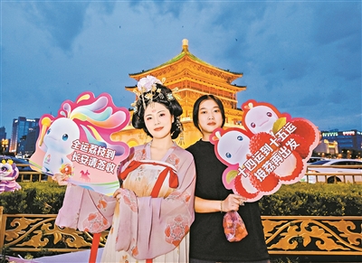 6月22日上午,十五运会和残特奥会吉祥物“喜洋洋”“乐融融”出现在西安永宁门城墙上。“喜洋洋”“乐融融”特意带来了从广州运来的新鲜荔枝,同行的还有身着唐装的“杨贵妃”和“李白”。