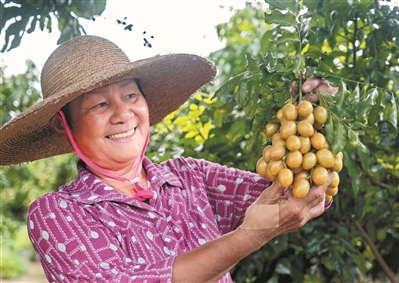 6月20日,记者走进龙岗村的黄皮果园,放眼望去,累累硕果缀满青翠枝头,率先成熟的黄皮果从一众青果中跳脱出来,很是显眼。摘下一串金灿灿的黄皮,独特清香扑鼻而来。剥开薄薄的果皮咬上一口,肉厚核小,酸甜爆汁,带给味蕾盛夏的美好。