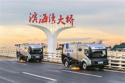 前日清晨,在滨海湾大道上,一辆造型极具未来感的车辆正安静而有序地作业。车辆缓缓行进,自动喷水、扫地、除尘,一气呵成。没有驾驶员、没有操作员,只有系统自我调度——这是东莞市滨海湾新区智慧环卫项目无人驾驶环卫车“上岗”现场。