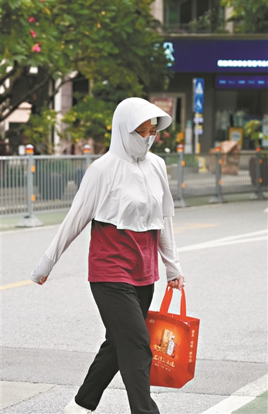 气温炎热,市民出门注重防晒。