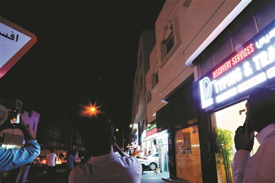 6月23日,人们在卡塔尔多哈拍摄导弹飞行轨迹。新华社/法新