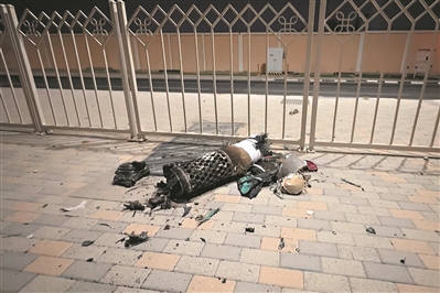 这是6月23日在卡塔尔一处街道拍摄的伊朗导弹残骸(视频截图)。卡塔尔国防部23日发表声明,确认卡塔尔防空系统当天成功拦截针对乌代德空军基地的导弹袭击,袭击未造成人员伤亡。 新华社/法新