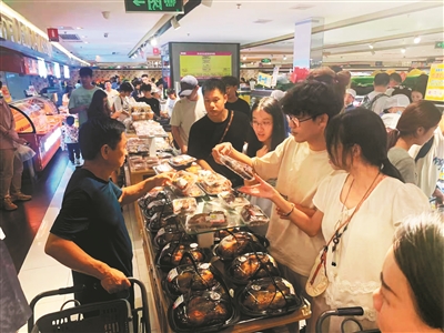 广州日报讯 (全媒体记者全杰摄影报道)听到永旺续约的消息公布后,记者昨日走访看到,天河城负一层的永旺超市依然客流如鲫,无论是生鲜区还是百货区都人头攒动。据知情人士透露,由于地处广州繁华的商圈中心地带,人流量旺盛和交通发达,多个零售巨头都看中了永旺天河城原址,并有接洽意向。而永旺方面也一直没有放弃与天河城集团的谈判,寻求租期届满后能原址续租。