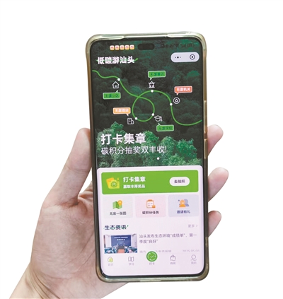 李可欣手机中的“低碳游汕头”小程序,也于活动当天正式上线。作为全国首个融合5G+北斗技术的城市低碳旅游平台,该平台创新推出碳积分激励体系,市民游客在汕头践行光盘行动、选择绿色出行、参与物品回收、打卡生态文旅线路等低碳行为,均可累积碳积分并兑换实惠奖励。