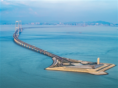 深中通道西人工岛面积约为13.7万平方米,形如海中鲲鹏。