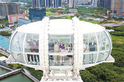 广州日报讯 (全媒体记者阮元元 通讯员黎俊摄影报道)日前,由柬埔寨国家航空公司及当地组团社代表组成的28人国际旅游团,作为首批“前海国际旅游线路”体验者到访前海。他们打卡欢乐港湾钟书阁,体验湾区之光摩天轮、宝安电音巴士,游览前海石公园,感受前海独特魅力。据悉,在前海管理局支持下,深圳市旅游协会近日推出三条“前海国际旅游线路”,以“时尚之旅”“滨海之旅”“未来之旅”三大主题,全方位展现前海风采。