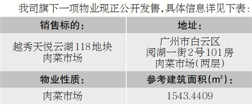 有意向购买者,请于见报之日起至广州市白云区越秀天悦云湖营销中心登记咨询。