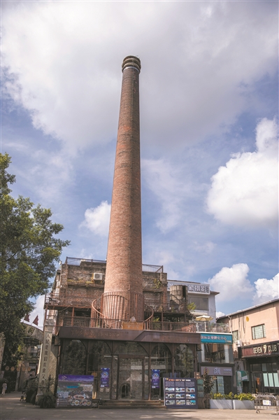大烟囱周边打造了丰富多彩的文旅场景。文创店、服饰店、音乐酒吧入驻。“高贤里记忆街”还原了增城六七十年代老街区的场景;“农工商记忆街”则复原农民农耕的场景,斑驳的打谷机勾起许多游客的年代记忆。