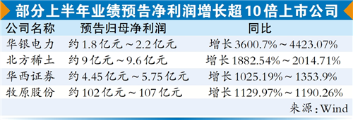 A股中报季揭开序幕 33家公司净利润预增超10倍