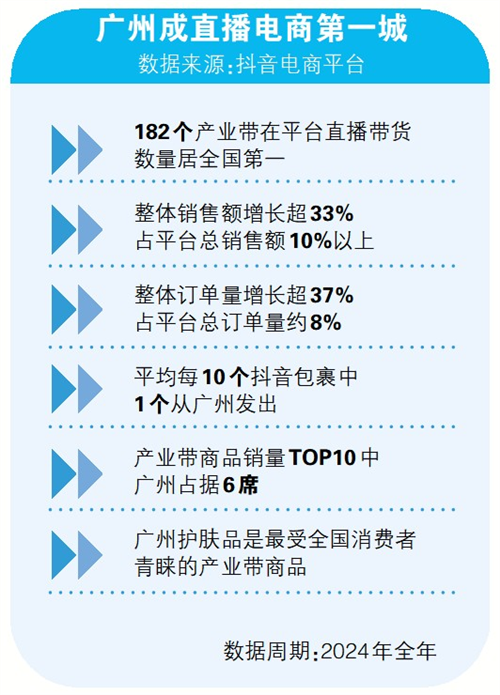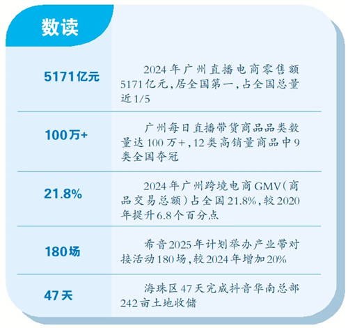 广州市统计局数据显示,2024年广州直播电商零售额达5171亿元;2025年上半年跨境电商贸易额突破千亿元,实现两位数增长,跑出广州“加速度”。