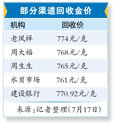 记者对比多个渠道发现,黄金专业回收点的回收条件较灵活,几乎所有足金品类都能回购。部分品牌金店也提供黄金回收业务。例如周大福黄金回收服务不限品牌和黄金种类。中国黄金等金店也表示可提供线上实物黄金回收业务。