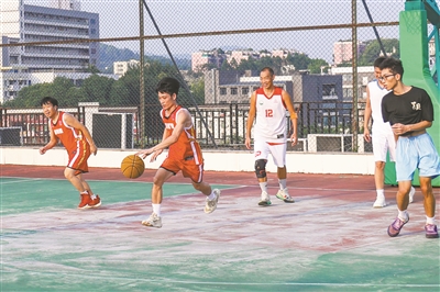 在新百佳楼顶开辟一片篮球场也是赖致远的决定。“喜欢打球,就想搞个条件好一点的场地,让球友们有地方打球、交流。”赖致远还留意到,在京溪街道周边的各个社区,有不少外来务工朋友都喜爱篮球,他就决定组织一个球局,提供场地,让大家打篮球、增进友谊。