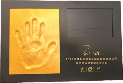 乒乓球奥运冠军马龙的金手印。孙珺 摄