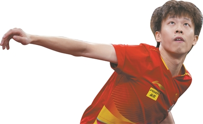 广东乒乓球世界冠军林高远在比赛中发球。@新华社