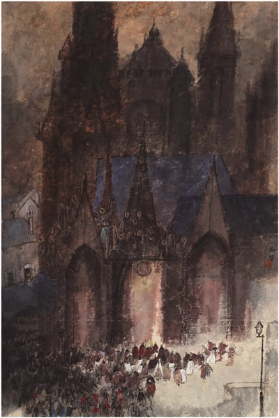 《晚钟》 93cm×62cm 纸本重彩 2018年 李劲堃