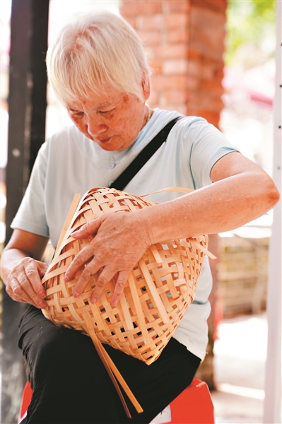 竹箩、竹筐、竹筛、竹簸箕、竹凳子、鱼篓、虾笼……这些竹编制品以其耐用、轻便、精巧,成为顺德家家户户的“标配”。随着时代变迁,这些竹编器物逐渐退出了人们生活的“舞台”。但在一批年轻艺术家的帮助下,传统手艺人再一次将这些竹编器物进行了艺术创新,这些竹编作品高挂在村中的大榕树下,“摇身一变”成为一件凸显岭南文化的公共艺术展品,这种创新成功为这些“困在时光中”的非遗注入了新的生命力。