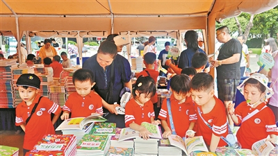 活动展位上,孩子们在认真阅读。