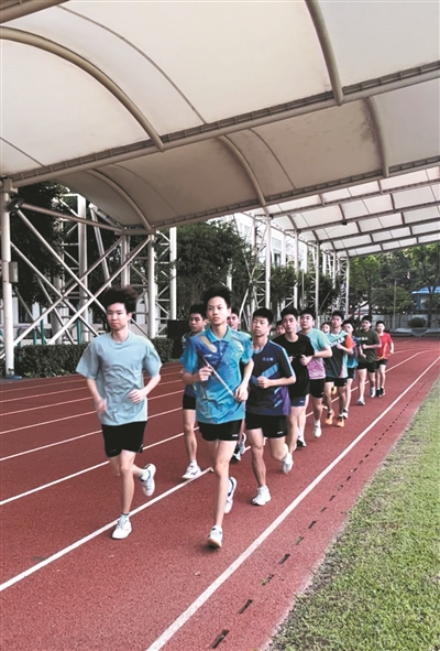 以女子重剑组为例,周二的“大早操”主要是有氧训练,以跑圈为主,一般需要跑8圈或以上,总量达到3000米左右;周四则以无氧为主,包括快节奏短跑。她透露,夏训最热闹的是前半个小时,田径场上挤满了各个项目的运动员,之后,大家根据所在项目的计划到室内进行基础技术训练,人逐渐少一些。“等到冬训的时候你再来一次,那可是跟市区的早高峰一样,我们要见缝插针地迈开步伐,因为实在太多人了。”相比夏天一醒来就往田径场方向赶,冬天的“大早操”出得更加艰难,“广东的冬天其实还是挺冷的,5时50分起床,我需要很大的决心才能掀开被子。”