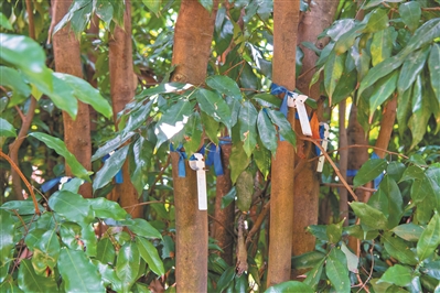 在资源圃一处坡地上,记者看到一片密密麻麻的“荔枝幼林”,几十株成一团,树干上绑着不同的编码标签。“这些是我们用资源圃里的实生种子或杂交种子孕育出的荔枝‘宝宝’,按‘亲缘’分组培育,分种在不同‘小区’内。”史发超说。待结束漫长的“童年”,优株将被选出扩繁,其余的将被淘汰。