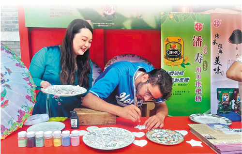 阿尔及利亚留学生阿内在体验非遗代表性项目广彩。