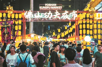 佛山功夫夜市人潮涌动、烟火沸腾。