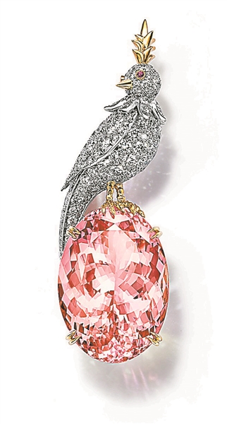 摩根石“石上鸟”胸针。