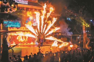 在深圳锦绣中华中国民俗文化村,“2025盛夏狂欢庆典”已正式拉开帷幕。本次活动以“梦华仲夏夜·泼水狂欢节”为主题,全新打造的《锦绣盛市·梦华录》主题区及焕新升级的泼水广场,为暑期旅游提供全新的体验场景。夜色中,《彝族火把狂欢巡游》从锦绣楼开始,游客可在巡游队伍的指引下随队前行,汇聚至泼水广场欣赏一场《鹏城TOP级绝技火秀》,火刀、火流星、吞火喷火等绝技轮番登场,构建“水火交融”的沉浸式视觉奇观。