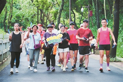 市民群众一起徒步,打卡环越秀山新时代文明实践带8个点位。