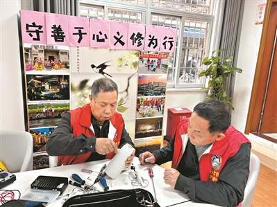 冯金泉的无私奉献精神感染了大家,社区内数位会维修的居民纷纷加入服务者队伍。